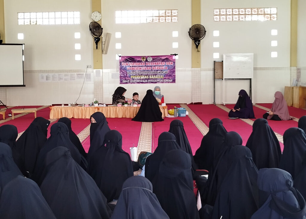 Barabai – Rumah Tahfizh Putri PKBM Al Umm Barabai bekerja sama dengan Puskesmas Barabai mengadakan kegiatan penjaringan kesehatan berkala (14/9).
